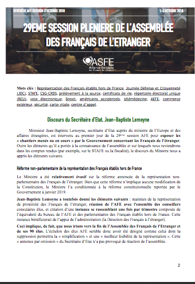 TELECHARGER LA FICHE PDF Monsieur Jean-Baptiste Lemoyne, secrétaire d’Etat auprès du ministre de l’Europe et des affaires étrangères, est intervenu au premier jour de la 29ème session AFE pour exposer les « chantiers menés ou en cours » par le Gouvernement concernant les Français de l’étranger. Outre les éléments qu’il a portés à la connaissance de l’assemblée et […]